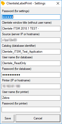 ClienteleLabelPrint configuration |