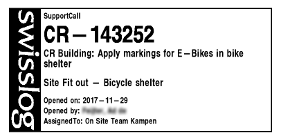 | ClienteleLabelPrint label example for a support call |