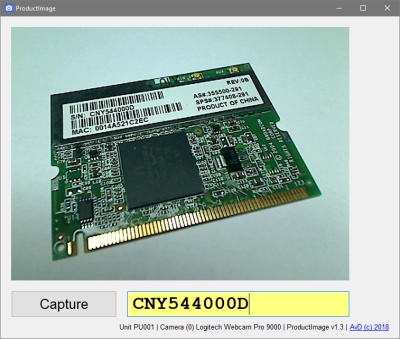 The capture button is disabled as long as the text box for the product identification number is empty. After capturing an image and it is saved in a predefined folder the text box is cleared automatically. In our setup we use a barcode scanner for entering the product identification number.